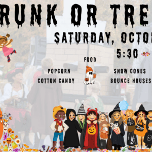 Come to TBC for all the candy and fun! We will have hot dogs, hamburgers, cotton candy, snow cones, and more! Don’t forget your costume!! Optional, of course. Saturday, October 25 5:30 – 8 pm